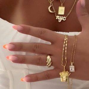 Add a touch of sunset to your outfit with our Soleil Necklace. This charm necklace features a beautiful sunset design. hanging from a unique Figaro chain. A perfect addition to any accessory collection.?